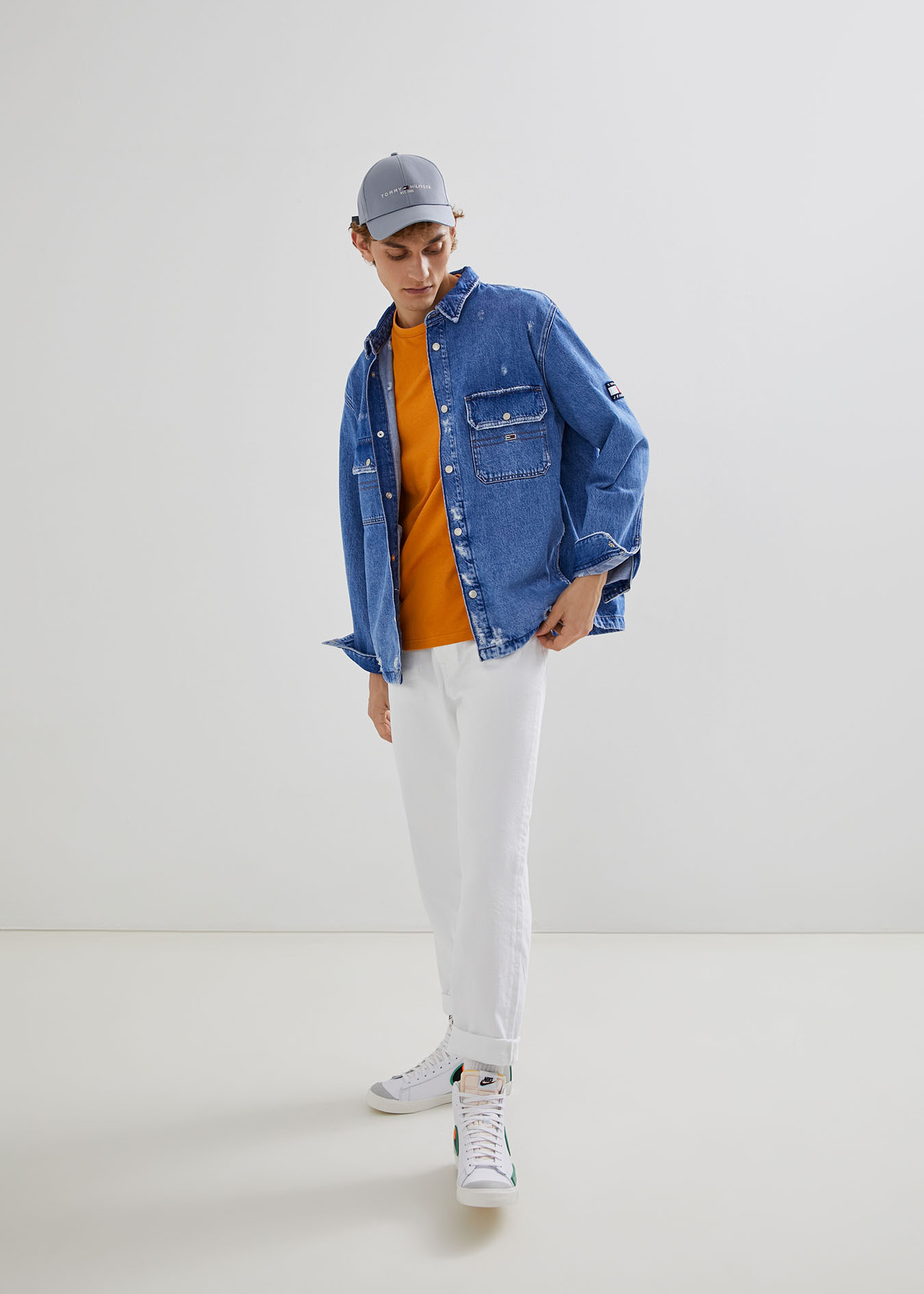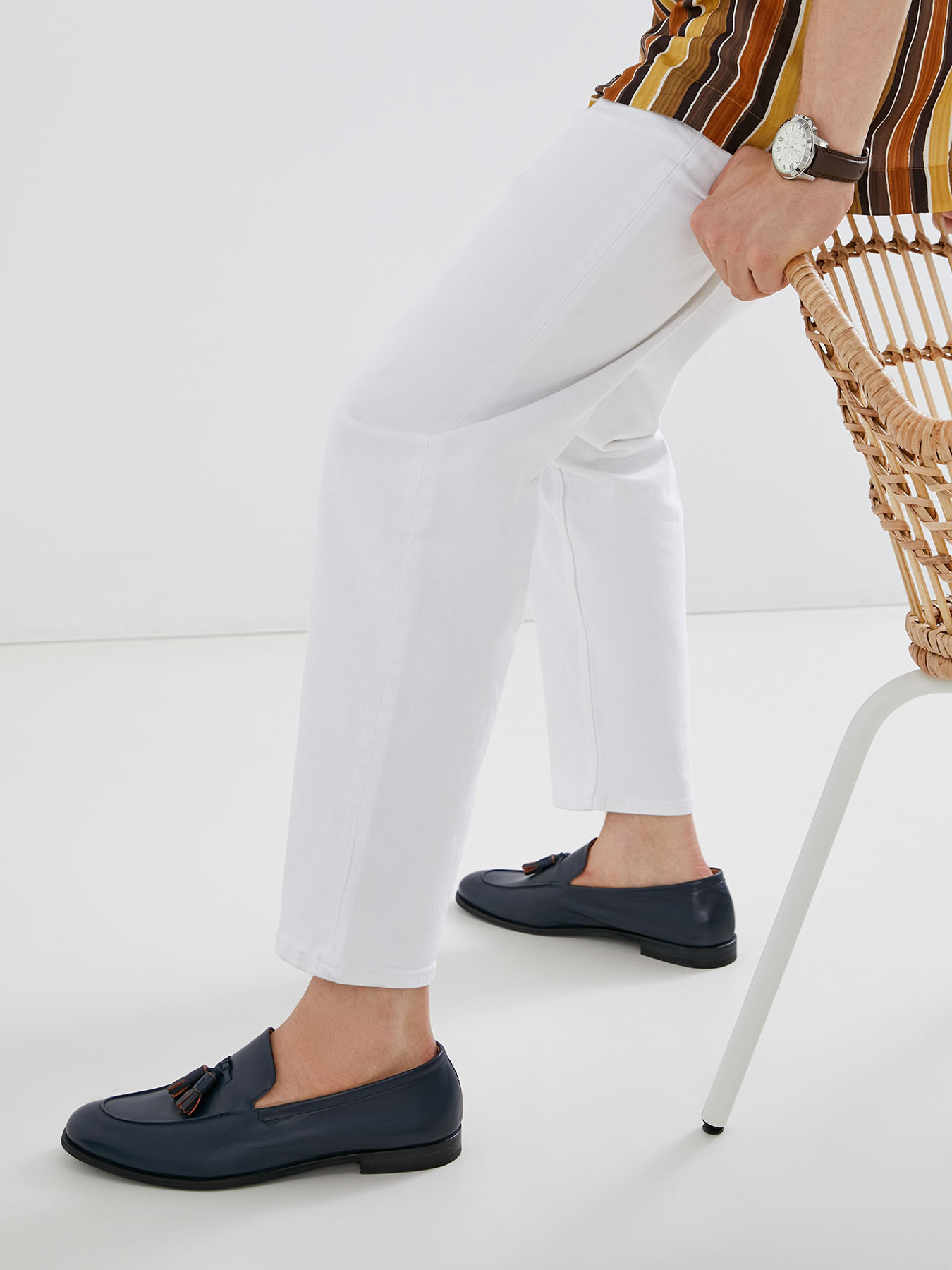 Белые джинсы, рубашка с узором (можно расстегнуть пару пуговиц) и яркие кеды. В этом образе есть что-то от итальянского плейбоя: не забудьте выучить пару фраз на итальянском языке, например, Сiao, bella.