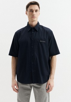 Синие премиум мужские рубашки с коротким рукавом