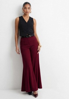 Бордовые женские широкие брюки (клеш) больших размеров