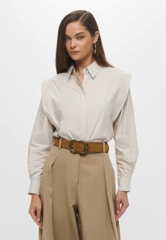 Бежевые премиум женские блузы с длинным рукавом