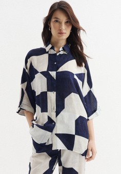 Женские рубашки с коротким рукавом с геометрическим принятом