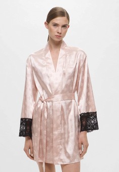 Розовые женские атласные и кружевные халаты