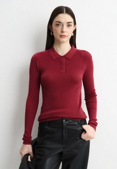 Бордовые женские свитеры с воротником поло