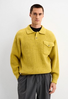 Желтые мужские поло с длинными рукавами