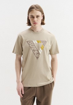 Бежевые мужские футболки с коротким рукавом Guess