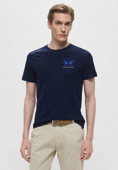 Синие мужские футболки с коротким рукавом La Martina