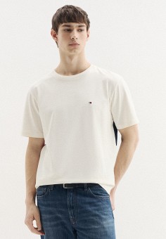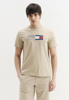Бежевые мужские футболки с коротким рукавом Tommy Hilfiger