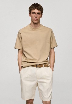 Бежевые мужские футболки с коротким рукавом Mango Man