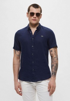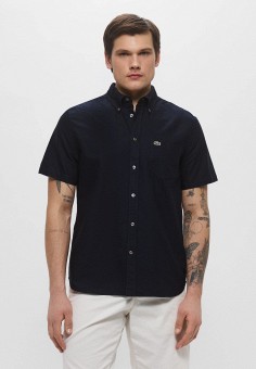 Синие мужские рубашки с коротким рукавом Lacoste