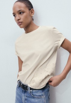 Бежевые женские футболки больших размеров Mango