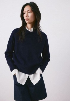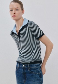 Синие женские свитеры с воротником поло Mango