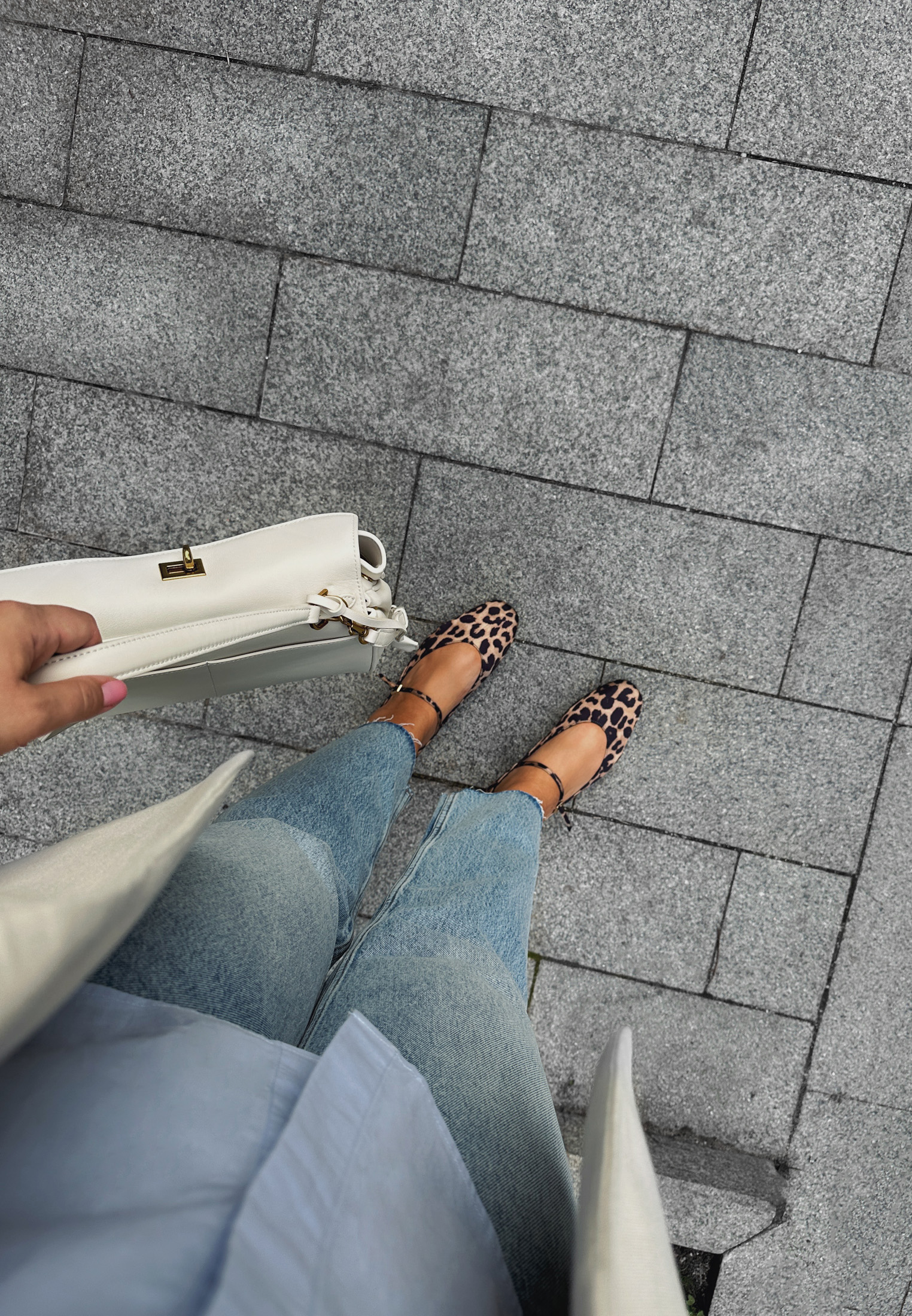 В стиле casual есть один подвох — он может выглядеть скучно. На помощь придут броские детали, например, обувь с леопардовым принтом, которая освежит наряд, не выходя за рамки базы. А еще балетки Мэри-Джейн с этим узором — тренд, который кочует из сезона в сезон, поэтому его точно стоит попробовать.