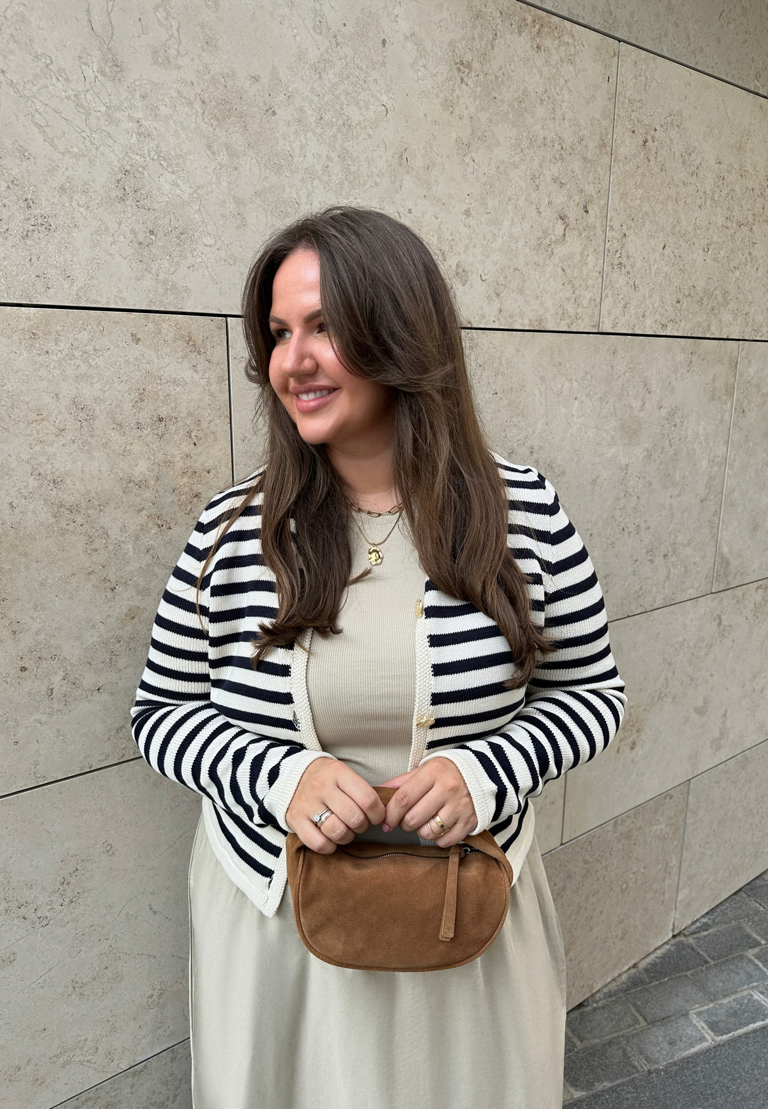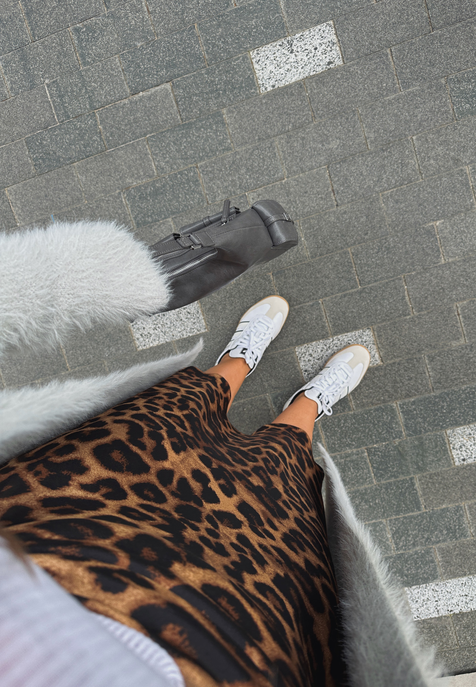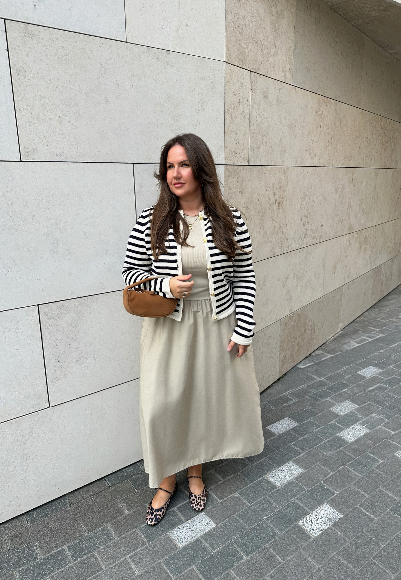 Думаете, что два рисунка сразу в образе — это не про элегантность? Мария доказывает обратное. Секрет в общей нейтральной гамме, которая делает полоску и леопард более классическими и универсальными, а также в лаконичном крое вещей.