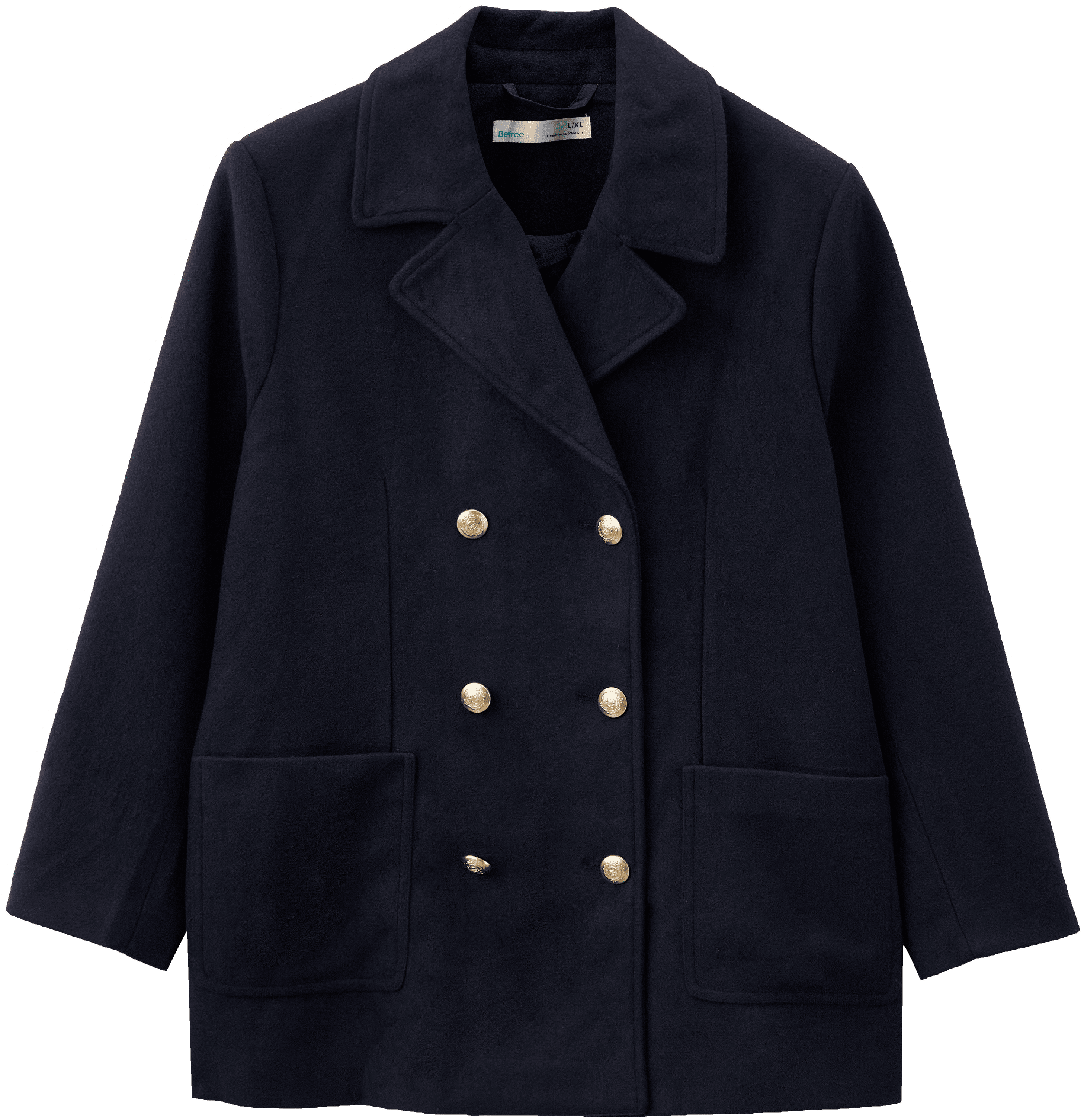 Двубортное пальто и яркая водолазка